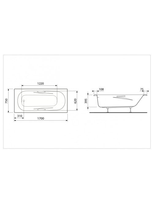 Jika Alma acéllemez kád 170x75 cm kapaszkodókkal 23427400000