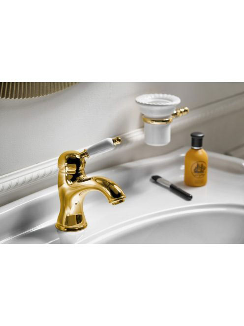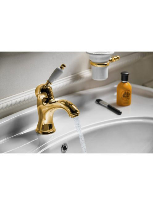 Sapho Kirké mosdó csaptelep automata leeresztővel, fehér kerámia karral, arany KI02BZ