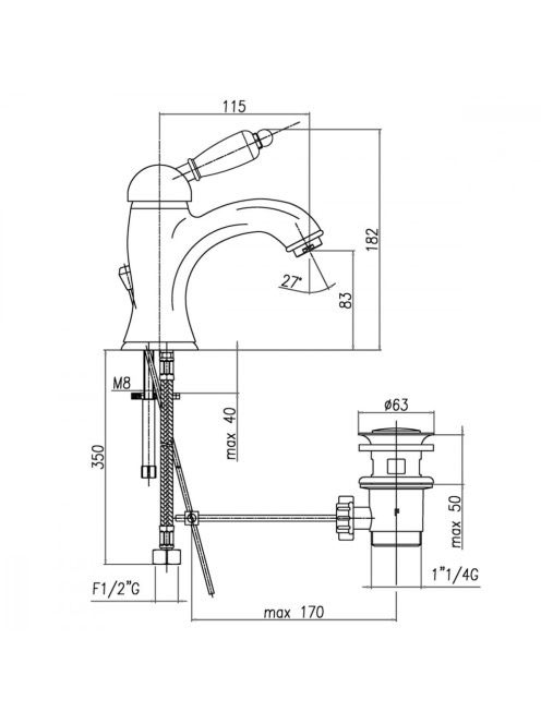 Sapho Kirké mosdó csaptelep automata leeresztővel, fehér ker
