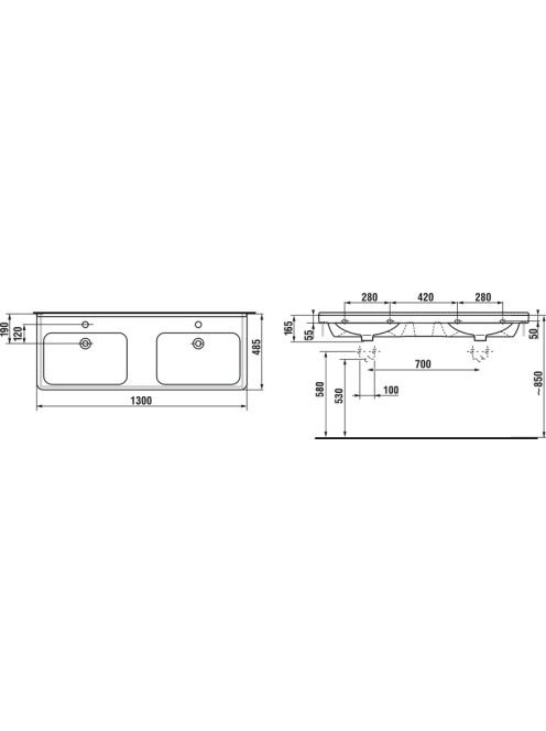Jika Cubito Pure duplamosdó 130x48,5 cm, csapfurattal és túlJika Cubito Pure duplamosdó 130x48,5 cm, csapfurattal és túl