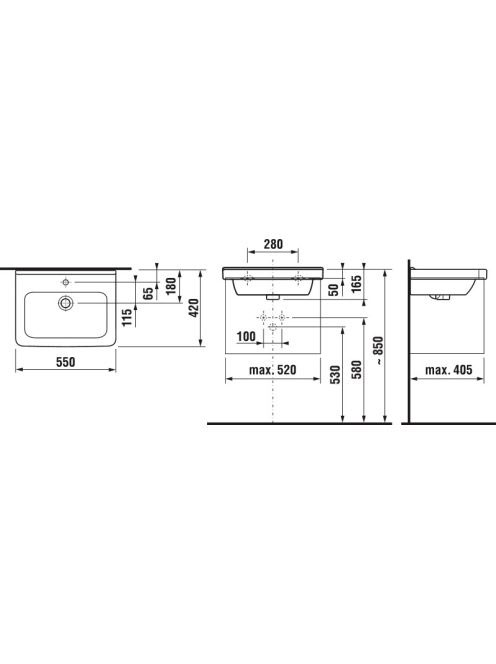 Jika Cubito Pure mosdó 55x42 cm, csapfurattal és túlfolyóval 8104220001041