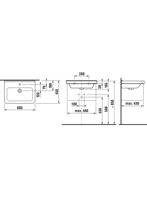 Jika Cubito Pure mosdó 60x45 cm, csapfurat nélkül, túlfolyóv
