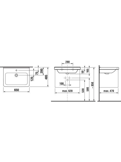 Jika Cubito Pure mosdó 65x48,5 cm, csapfurattal és túlfolyóv