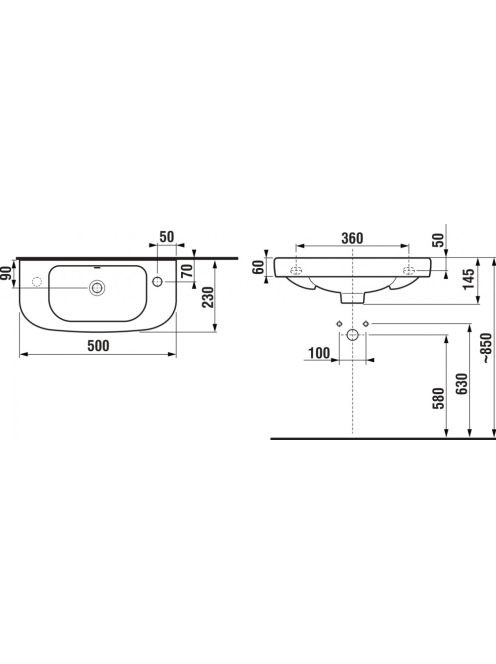 Jika Deep by Jika kézmosó csaplyukkal a baloldalon 50cm 8156