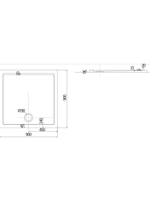 Jika Padana négyszögletes zuhanytálca 90x90 cm, fehér 211932