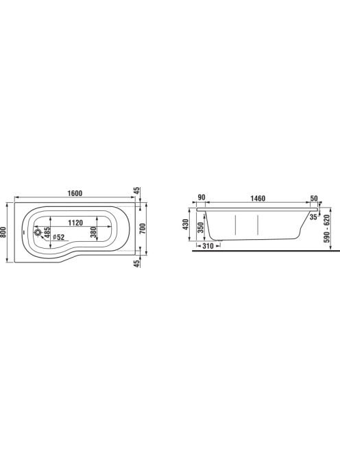 Jika Tigo aszimmetrikus kád 160x80/70 cm, balos 2212100000001