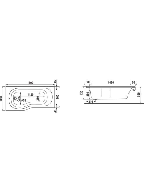 Jika Tigo aszimmetrikus kád 160x80/70cm, balos 2232100000001