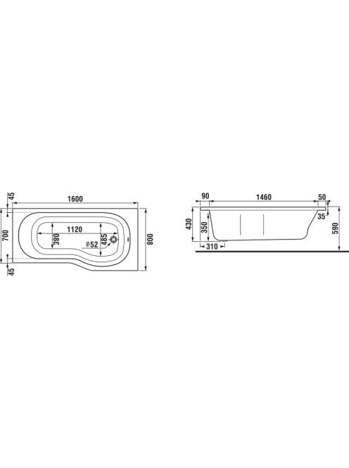 Jika Tigo aszimmetrikus kád 160x80/70cm, jobbos 222210000000Jika Tigo aszimmetrikus kád 160x80/70cm, jobbos 222210000000