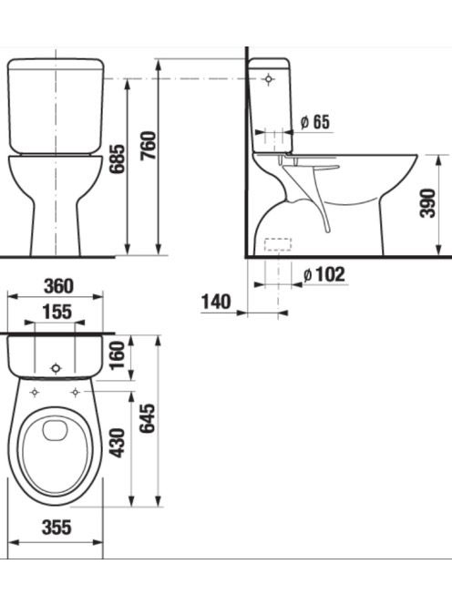 Jika Zeta mélyöblítésű kombi WC, alsó kifolyású, oldal beköt