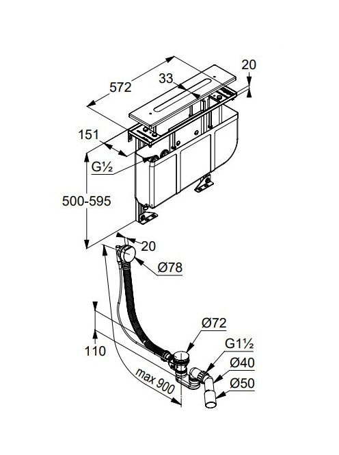 Kludi Rotexa szerelőkeret alsóhidas kádtöltő- és zuhanycsaptelephez, króm 7878205-00