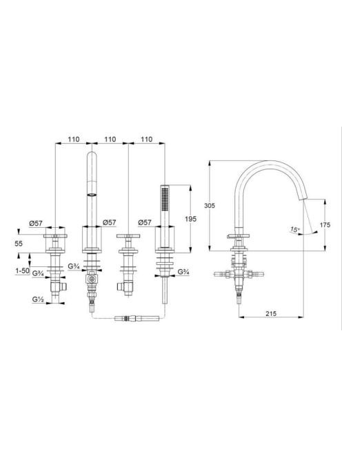 Kludi Nova Fonte Classic kádperemre szerelhető 4 lyukas kád/