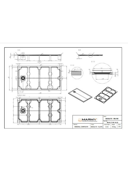 Marmy Basalto 90x160 zuhanytálca Cavalli Black 808117901654
