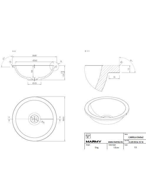 Marmy Carola kerek mosdó D40x2 622909041018 - Fürdőszoba - S