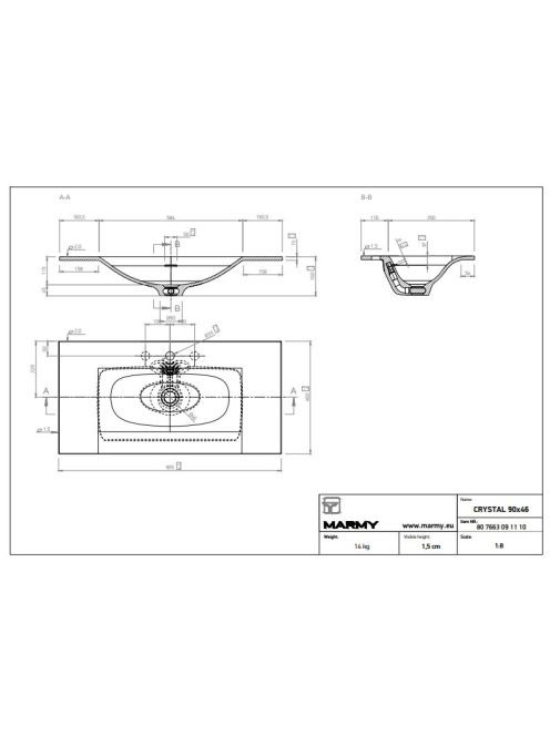 Marmy Crystal mosdó 90x46 807663091110 - Fürdőszoba - SzanitMarmy Crystal mosdó 90x46 807663091110 - Fürdőszoba - Szanit