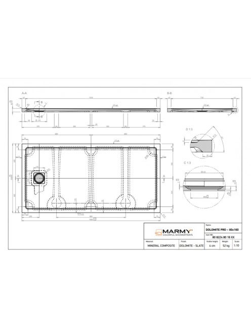 Marmy Dolomite Pro 80x160 zuhanytálca Valentino Grey 8082248