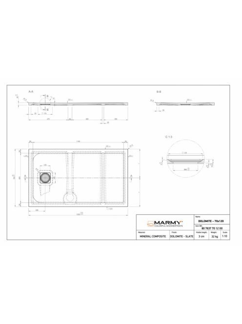 Marmy Dolomite szögletes zuhanytálca 70x120 Armani Beige / M