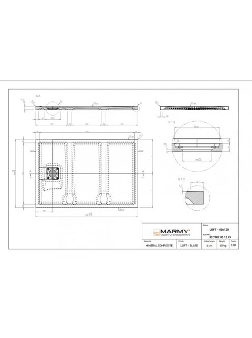 Marmy Loft 80x120 zuhanytálca Prada White 807962801250 +aján