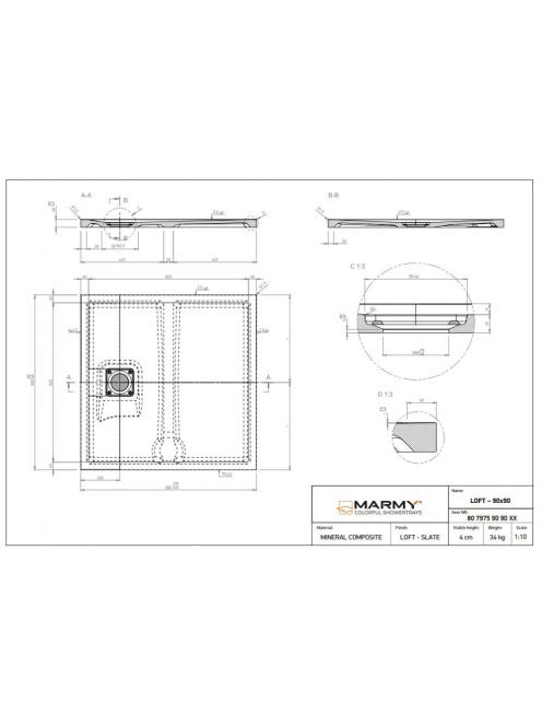 Marmy Loft 90x90 zuhanytálca Valentino Grey 807975909053 +aj