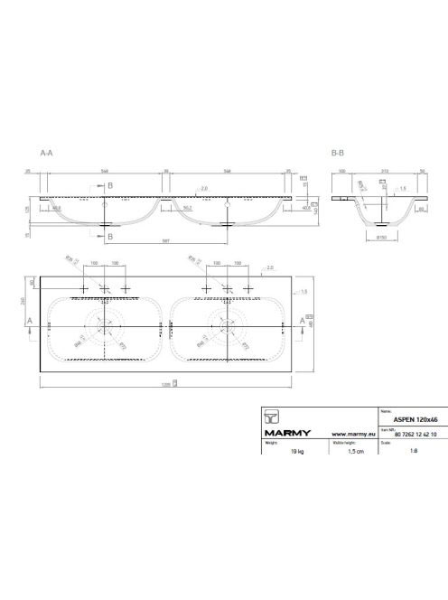 Marmy Aspen dupla mosdó 120x46 807262124210 - Fürdőszoba - S