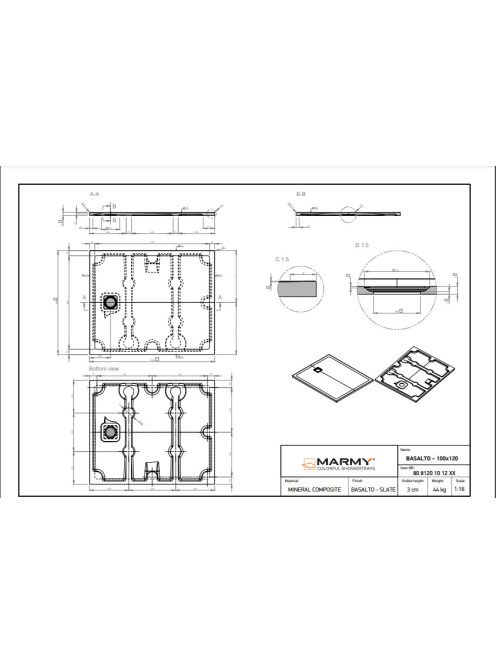 Marmy Basalto 100x120 zuhanytálca Cavalli Black 808120101254