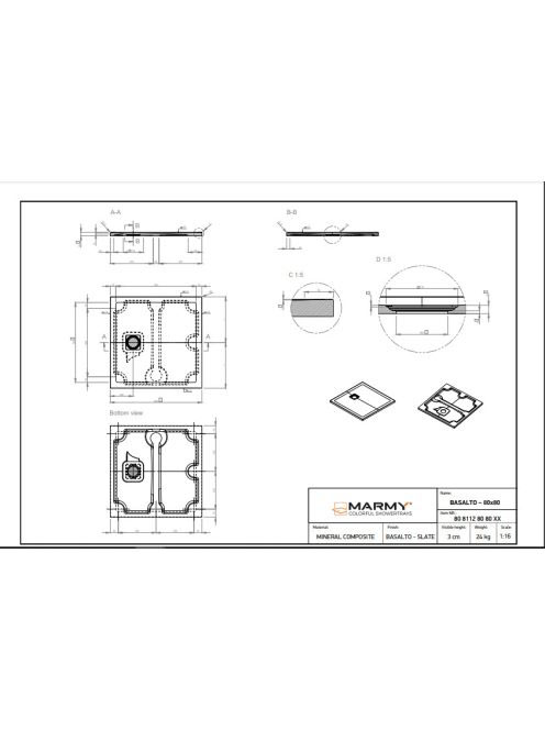 Marmy Basalto 80x80 zuhanytálca Cavalli Black 808112808054 +