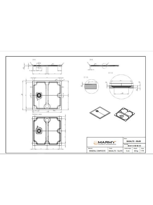 Marmy Basalto 90x90 zuhanytálca Cavalli Black 808113909054 +