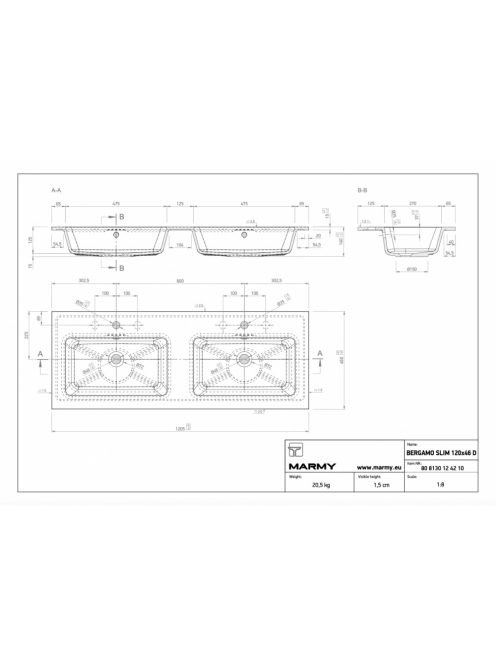 Marmy Bergamo Slim 120x46 dupla mosdó 808130124210 - Fürdősz