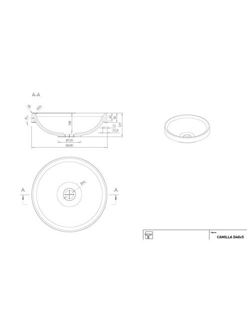 Marmy Camilla kerek mosdó D40x5 622907041018 - Fürdőszoba -