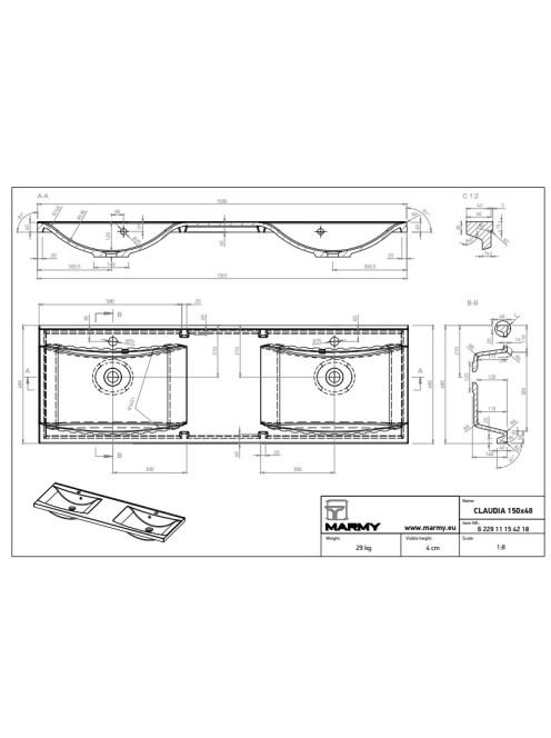 Marmy Claudia mosdó 150x48 622911154218 - Fürdőszoba - Szani