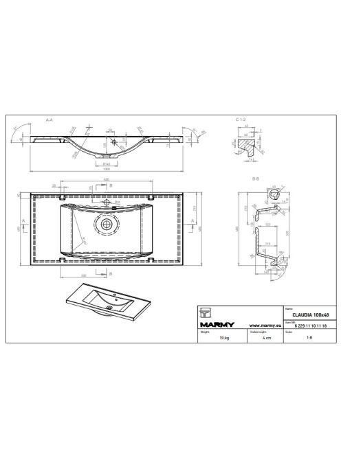 Marmy Claudia mosdó 100x48 622911101118 - Fürdőszoba - Szani
