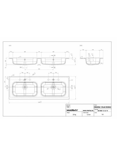 Marmy Cremona 120x46 dupla mosdó 806983124210 - Fürdőszoba -