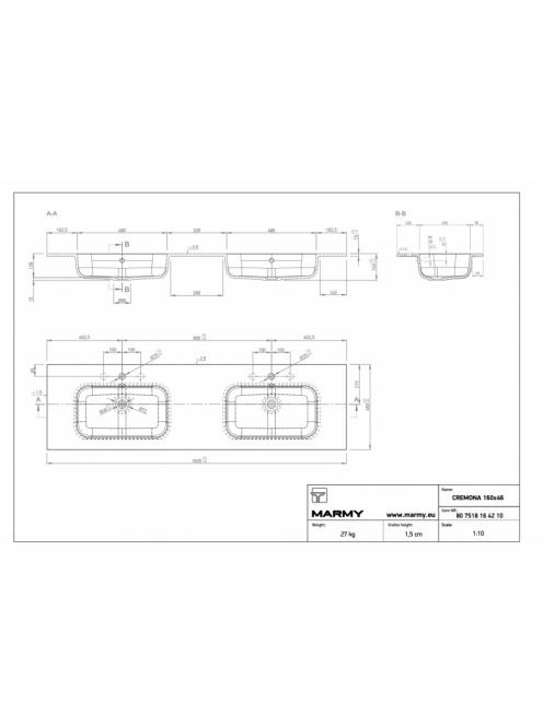 Marmy Cremona 160x46 dupla mosdó 807518164210 - Fürdőszoba -