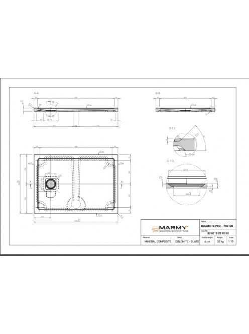Marmy Dolomite Pro 70x100 zuhanytálca Prada White 8082187010