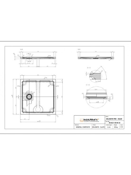 Marmy Dolomite Pro 80x80 zuhanytálca Armani Beige 8082218080