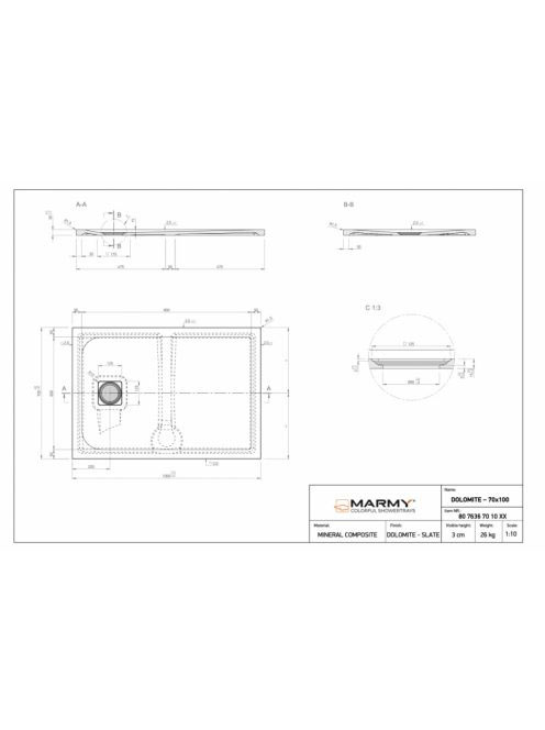 Marmy Dolomite szögletes zuhanytálca 70x100 Valentino Grey / Matt Szürke 807636701053 +ajándék szifon
