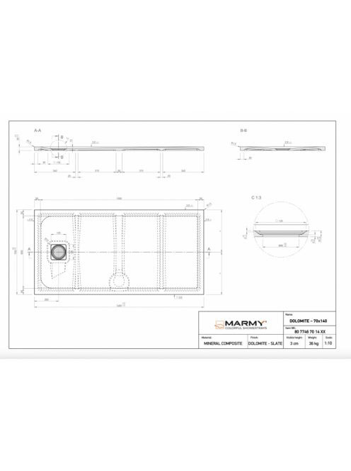 Marmy Dolomite szögletes zuhanytálca 70x140 Valentino Grey /