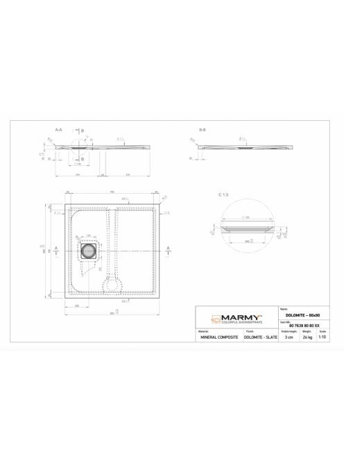Marmy Dolomite szögletes zuhanytálca 80x80 Armani Beige / MaMarmy Dolomite szögletes zuhanytálca 80x80 Armani Beige / Ma