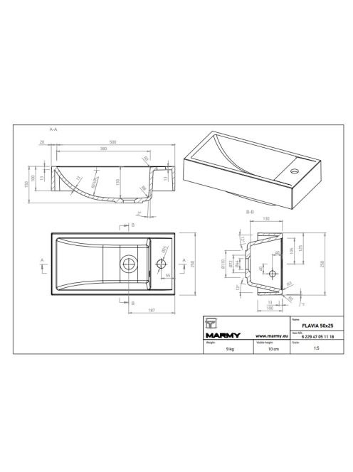 Marmy Flavia mosdó 50x25 cm, fényes fehér 622947051118 - Für