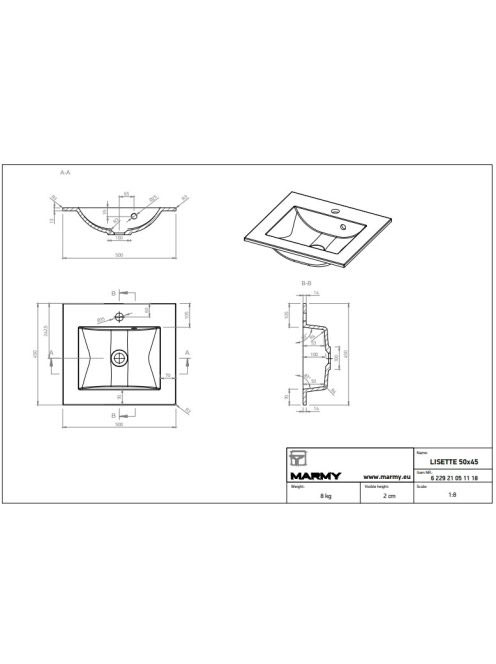 Marmy Lisette mosdó 50x45 622921051118 - Fürdőszoba - Szanit
