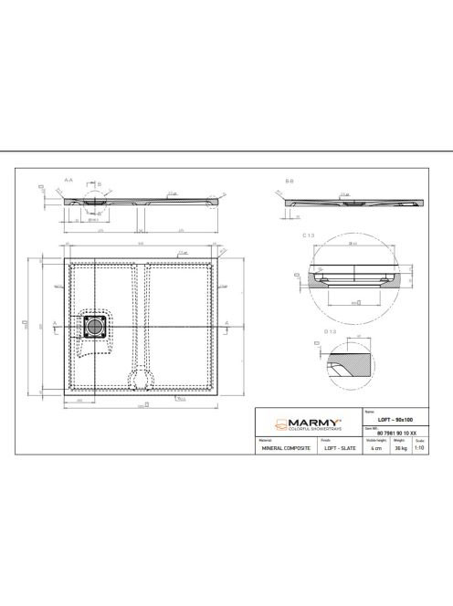 Marmy Loft 90x100 zuhanytálca Gucci Latte 807981901056 +aján