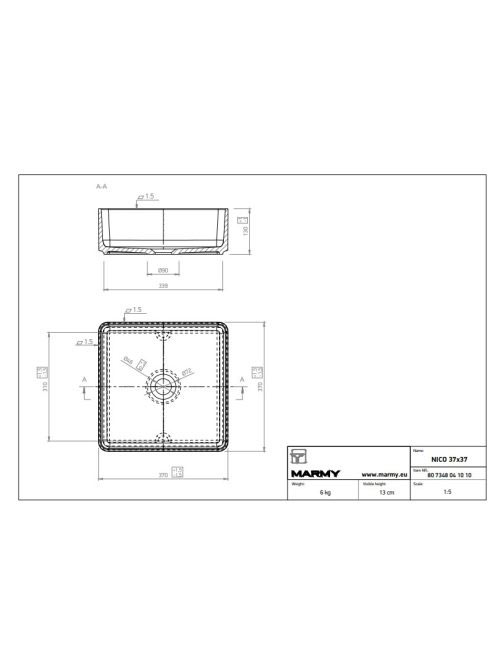 Marmy Nico mosdótál 37x37 807348041010 - Fürdőszoba - Szanit