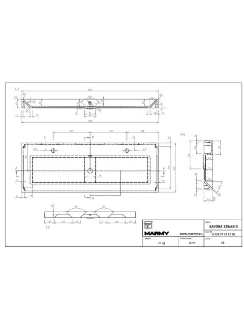 Marmy Savona mosdótál 125x45 622937131218 - Fürdőszoba - Sza