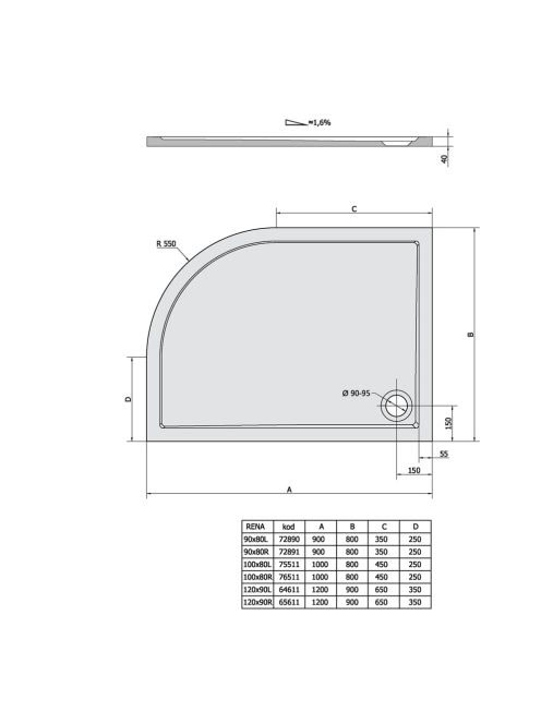 Polysan Klasik Rena öntött márvány balos zuhanytálca 100x80