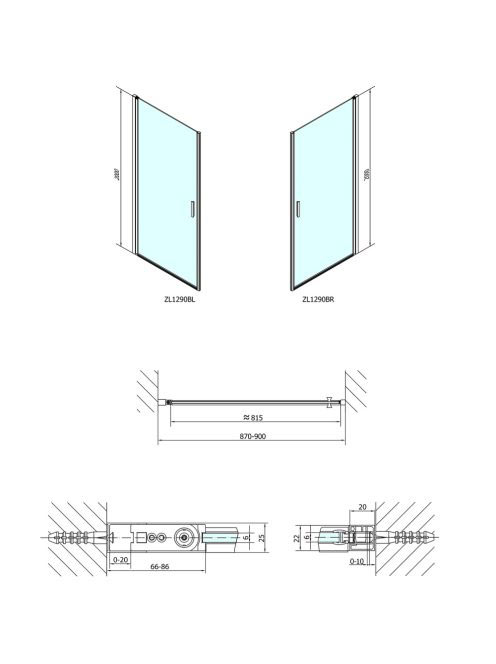 Polysan Zoom Line Black zuhanyajtó 90x200 cm transzparent üv