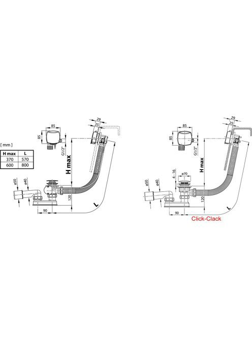 Ravak Kádfeltöltő túlfolyó 570mm ClickClack rendszer króm X0