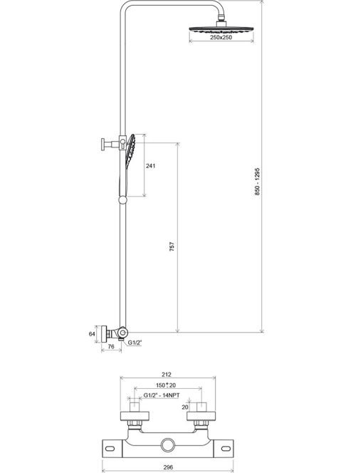 Ravak TE 093.00/150 Termo 300 zuhanyoszlop - termosztátos cs