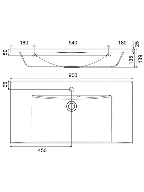 Ravak Flat 900 mosdó túlfolyóval, fehér XJP01190000 - Fürdős