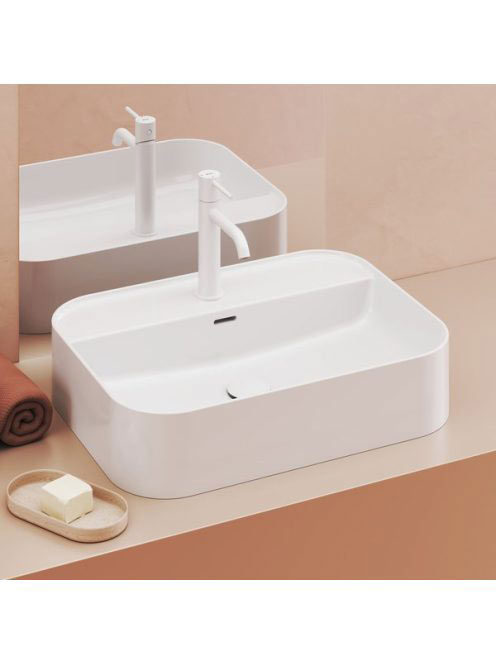 Ravak Ceramic Slim Shelf R kerámiamosdó 55x40 cm, túlfolyóval és csapfurattal, fehér XJX01155005