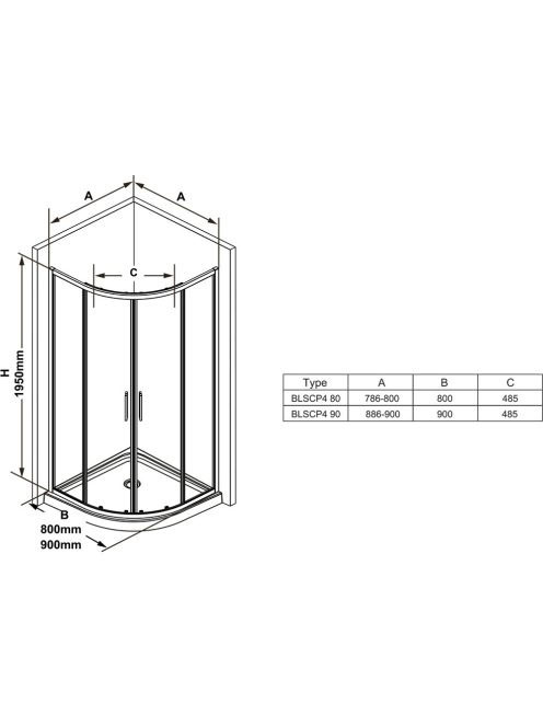 Ravak Blix Slim BLSCP4-90 zuhanykabin (króm-transparent) X3B