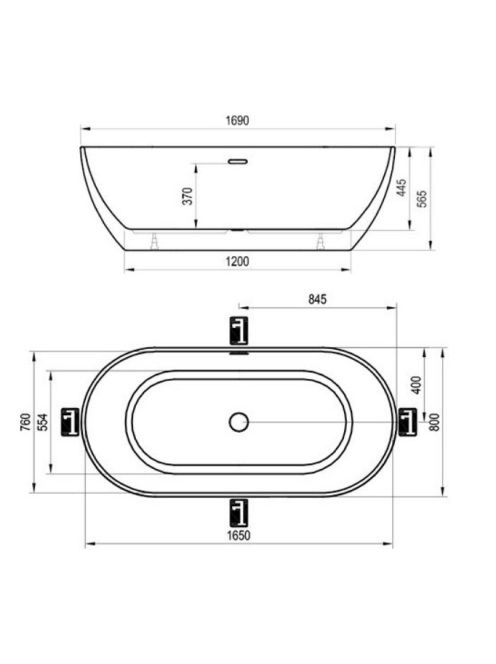 Ravak Freedom O akril szabadonálló fürdőkád 169x80 cm, fekete le-és túlfolyóval XC00100032